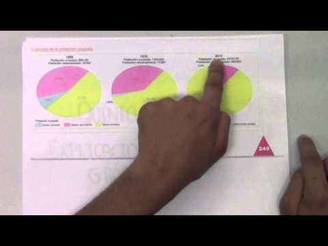 El primer gráficos copara la distribución de la población en los tres sectores económicos en Tanzania, Guatemala y Reino Unido. El segundo gráfico es una evolución de la distribución de los sectores económicos en la comunidad de Madrid